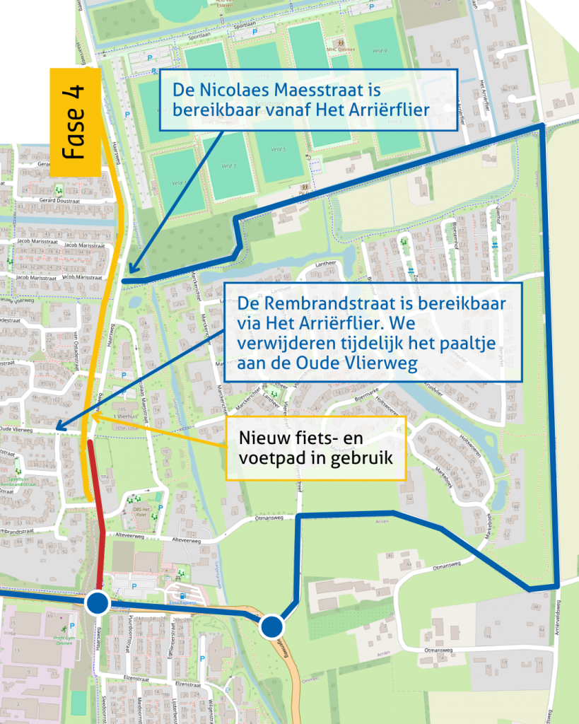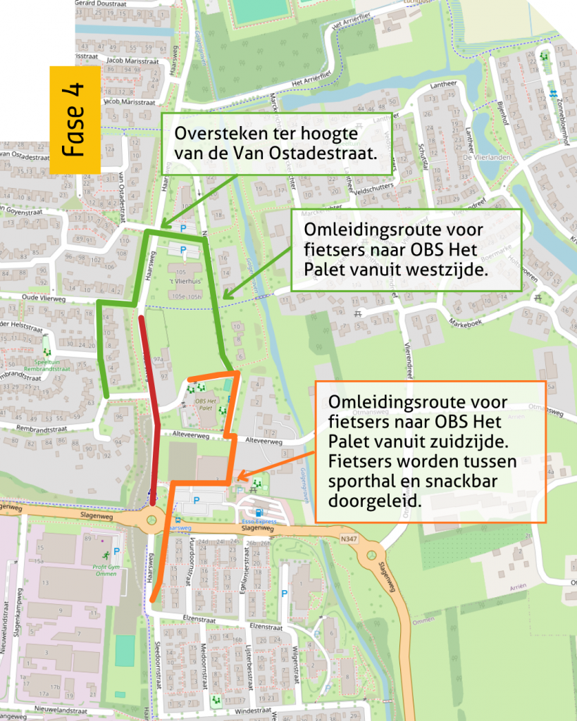- Fietsers vanuit de westzijde (Alteveer) worden via de Rembrandstraat en de Oude Vlierweg naar de Haarsweg geleid. Het oversteekpunt is ter hoogte van de Van Ostadestraat.